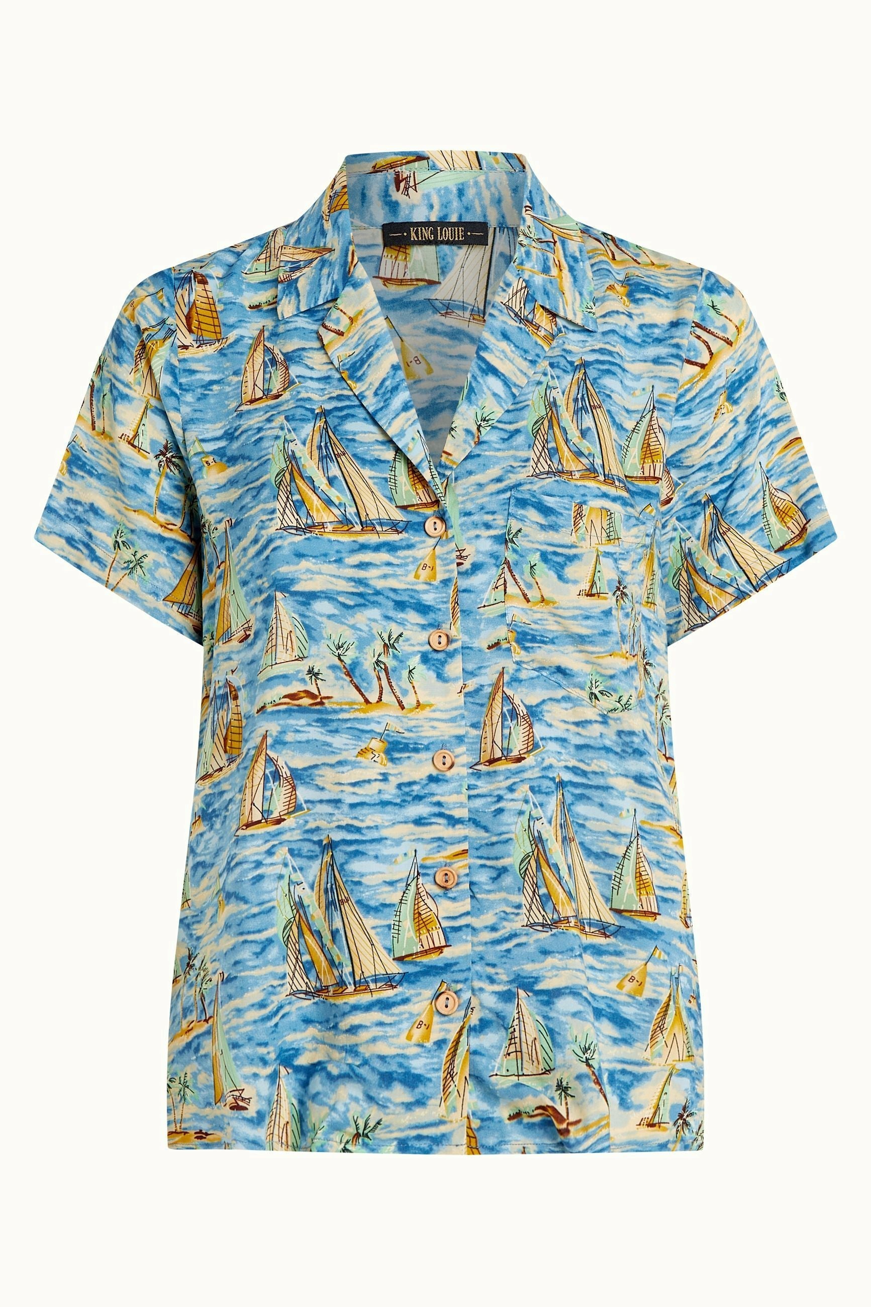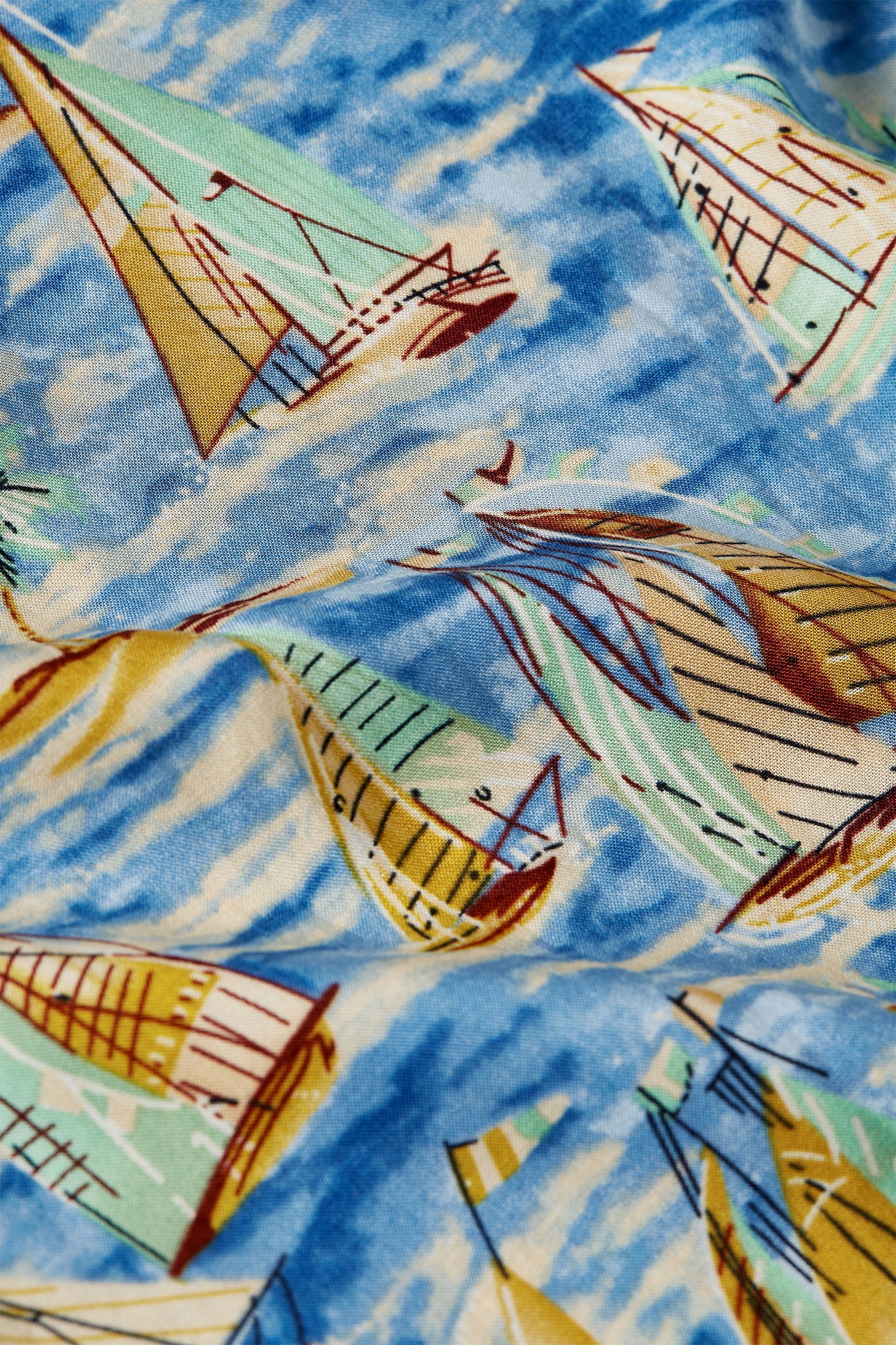Blusa estampada con bolsillos en el pecho, aberturas en el costado y estampado náutico