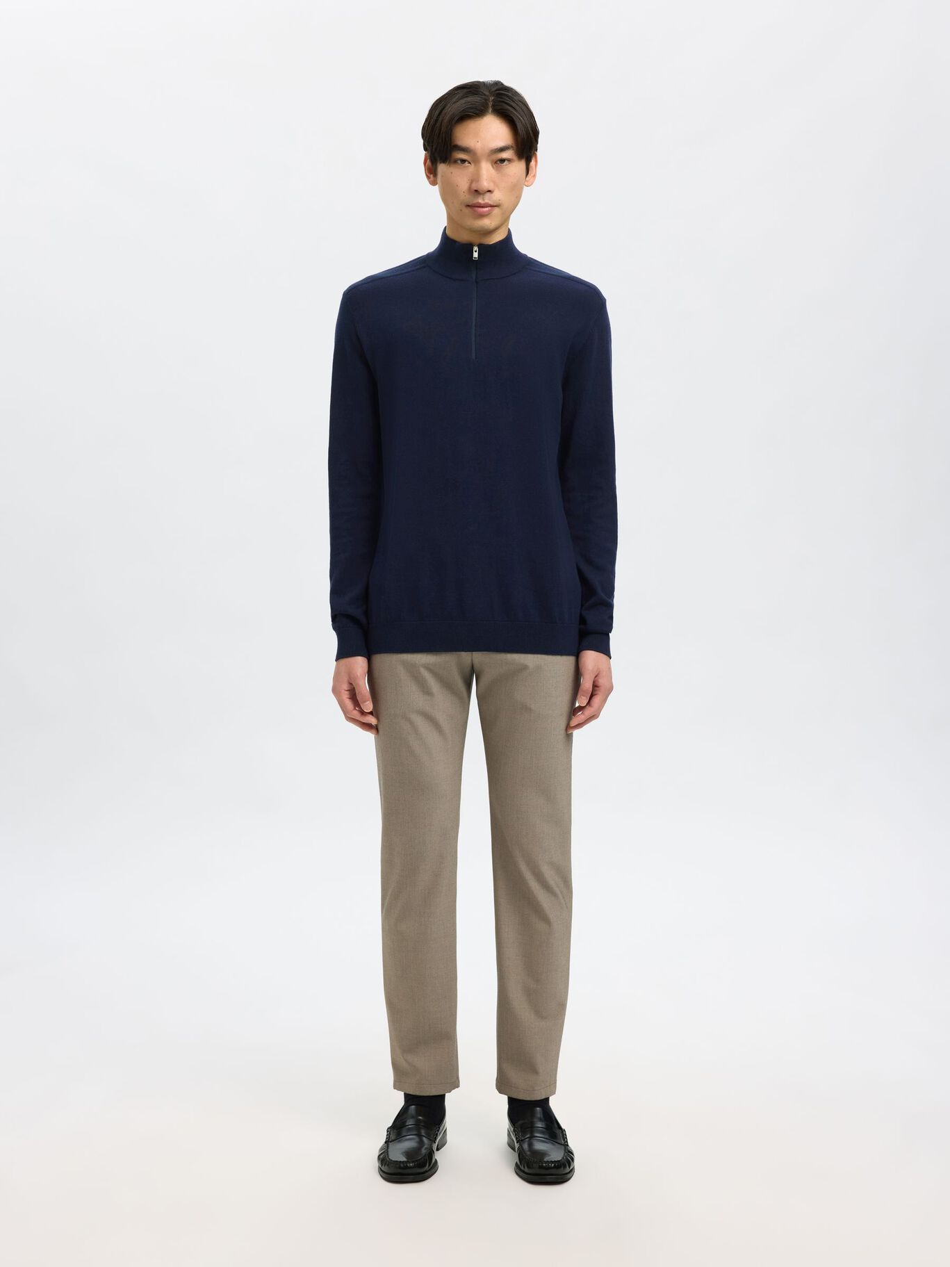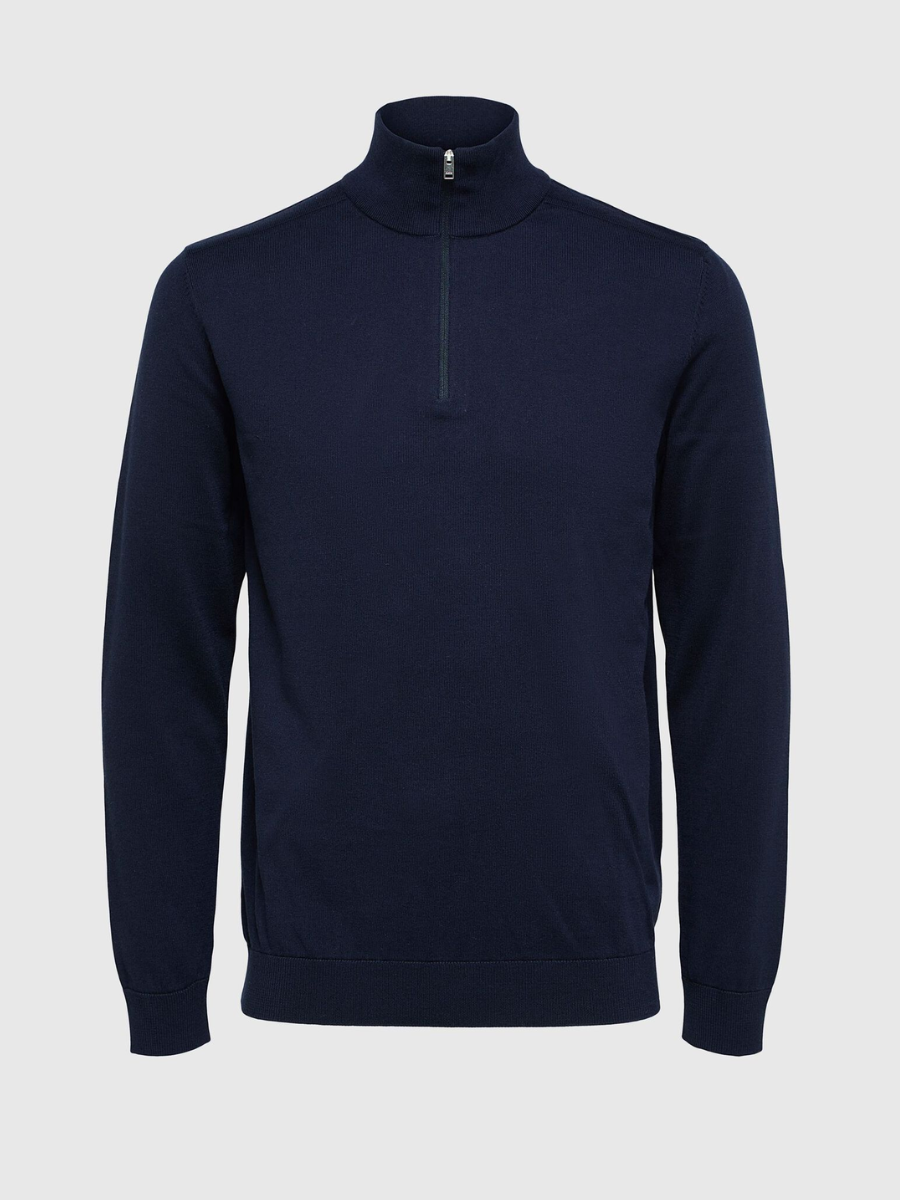 Jersey de algodón orgánico con cuello perkins y cremallera media. Confeccionado con materiales sostenibles, ofrece comodidad y transpirabilidad para el uso diario.