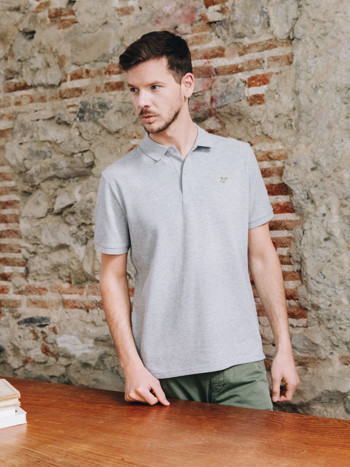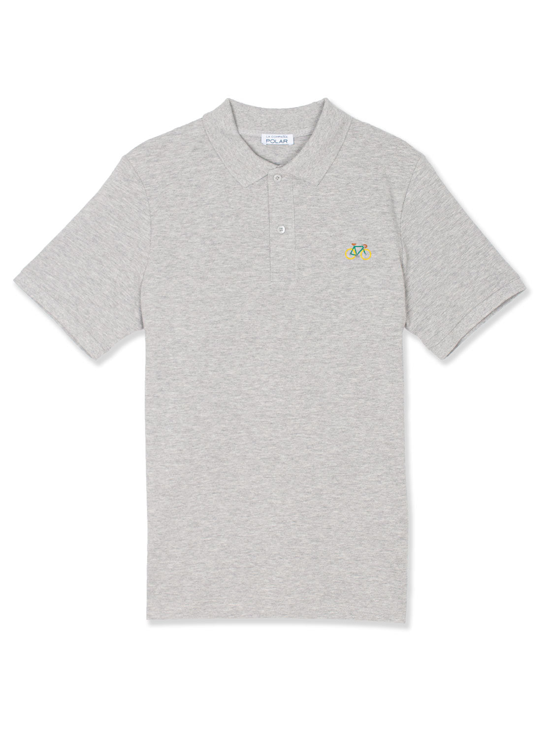 Polo con bordado multicolor de una bicicleta a la altura del pecho.Está elaborado con algodón orgánico y producida en talleres Fair Trade.