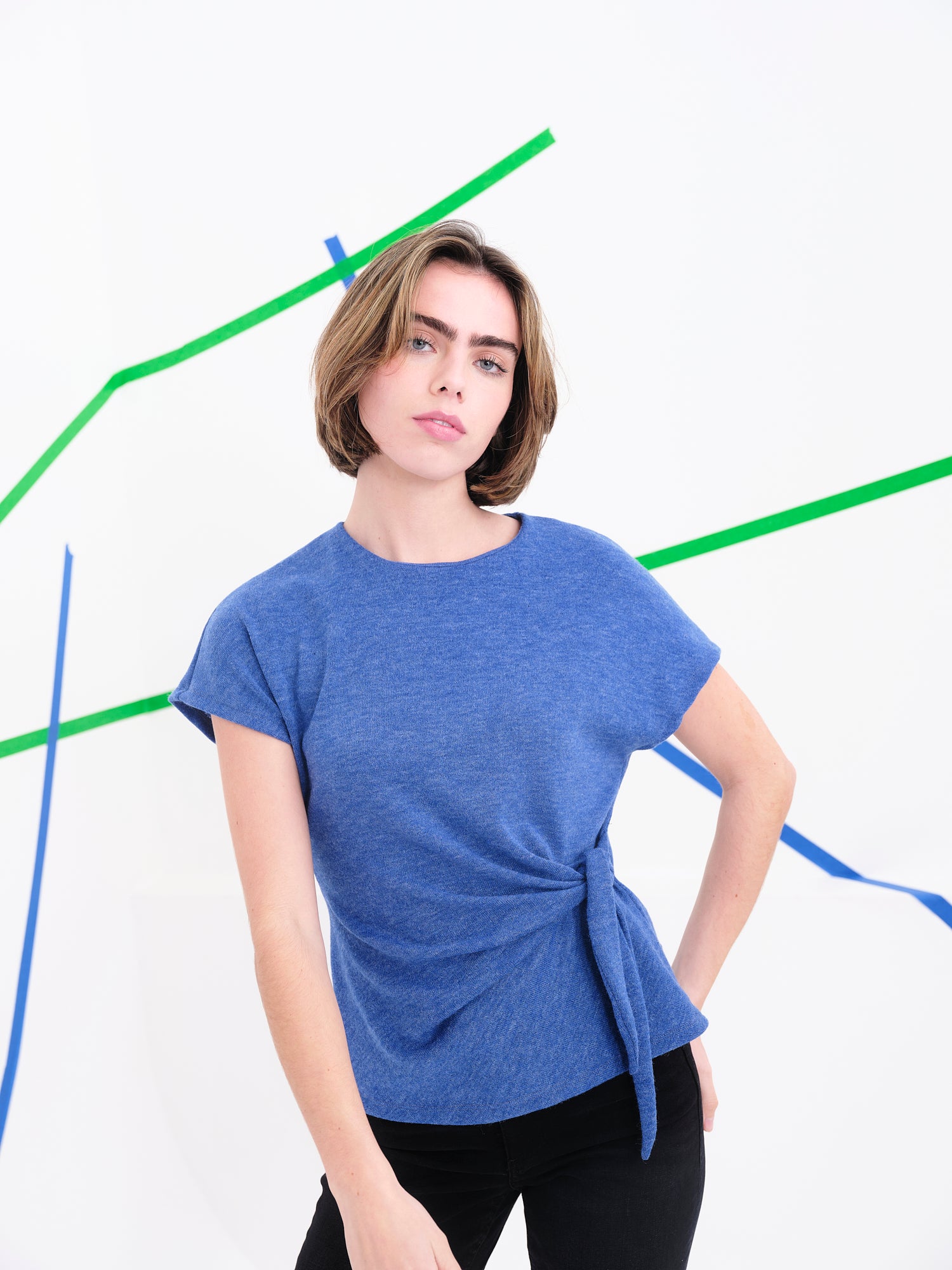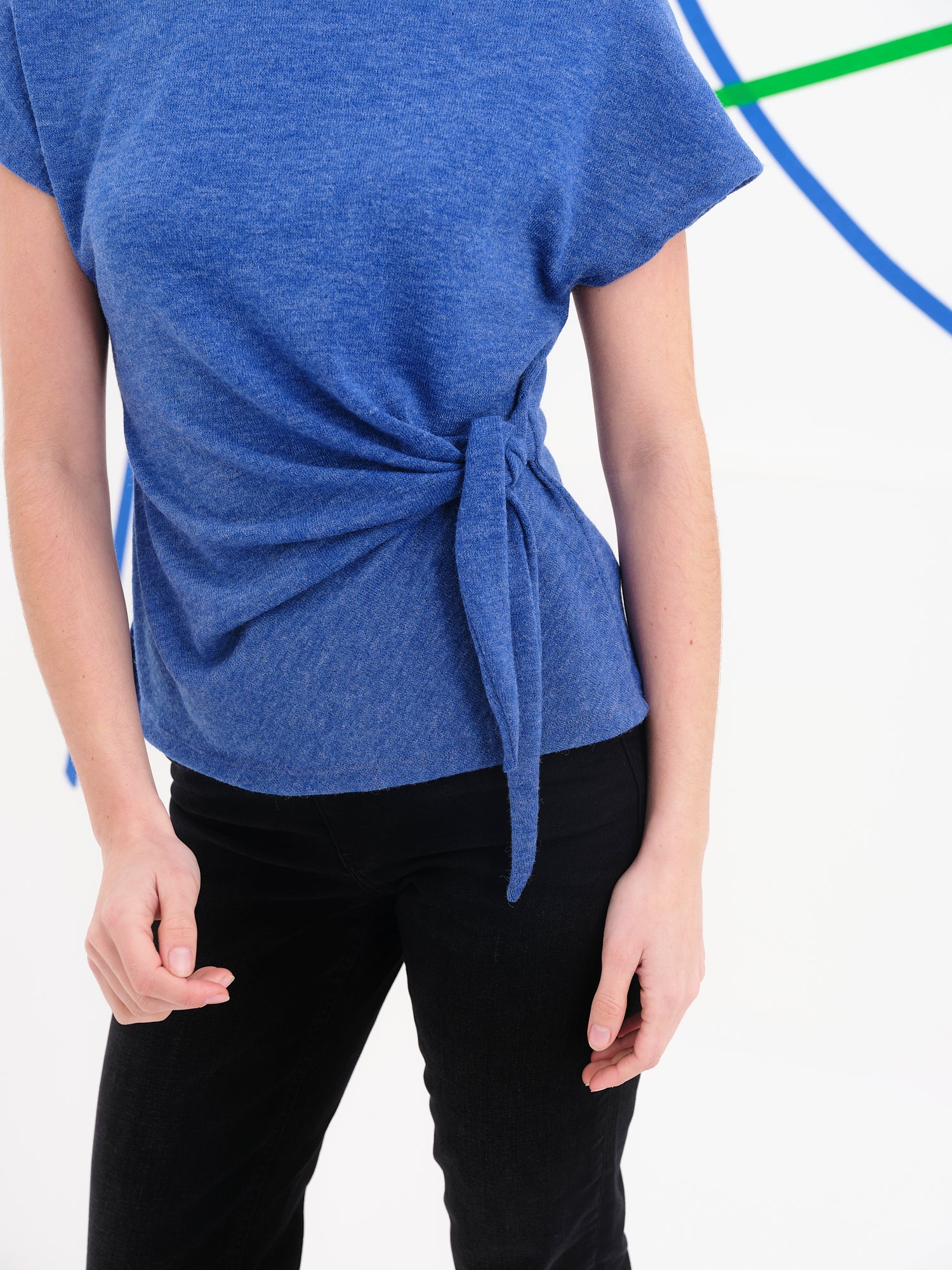 Este top de manga corta está confeccionado en punto acrílico, un tejido ligero, suave y con excelente caída que aporta comodidad sin perder estructura. Su diseño sencillo se realza con un lazo lateral que permite ajustar la silueta y añade un toque dinámico y moderno. Ideal para el día a día o para estilismos más creativos. Una prenda funcional con detalles que marcan la diferencia, pensada para quienes valoran el confort sin renunciar al estilo.