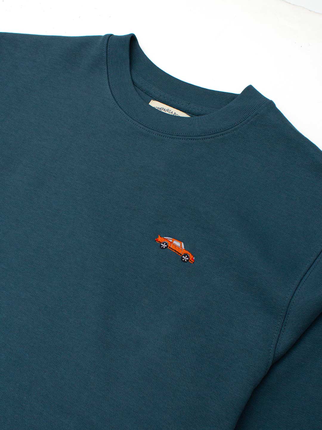 Sudadera de la línea de bordados de la Compañía Polar. Está elaborada con algodón orgánico y producida en talleres Fair Trade.