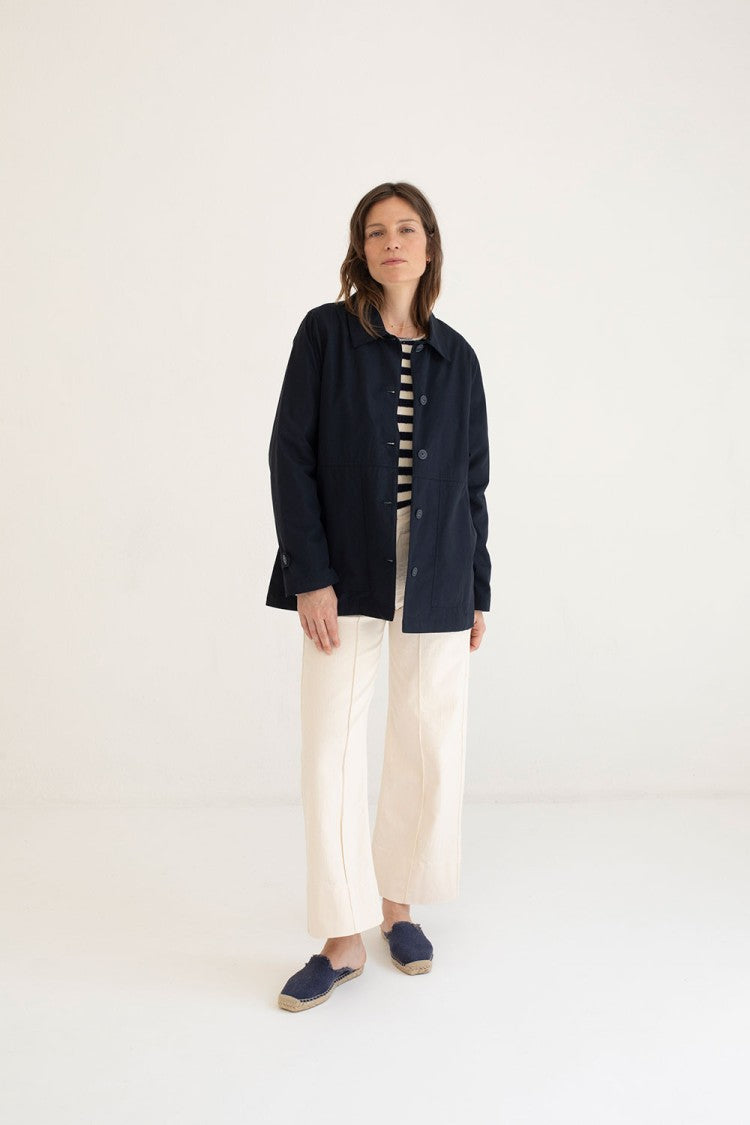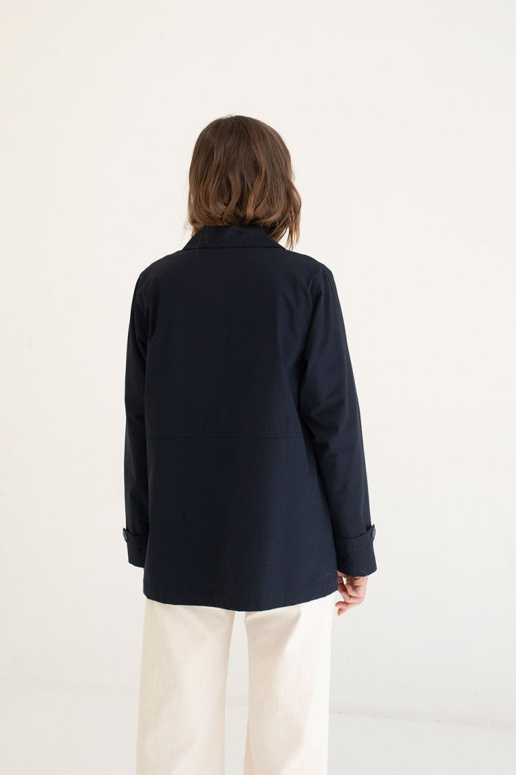 Cazadora de estilo trench midi con cuello de cazadora. Cuenta con bolsillos delanteros y trabillas en puño, dándole un toque sofisticado. Perfecto para el entretiempo y un esencial en tu armario.