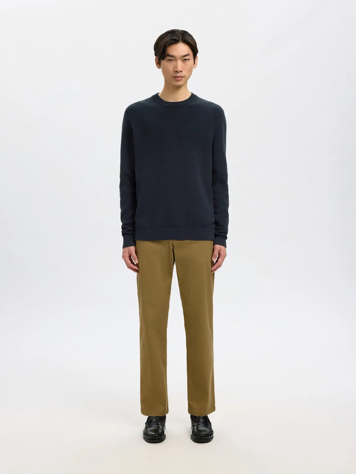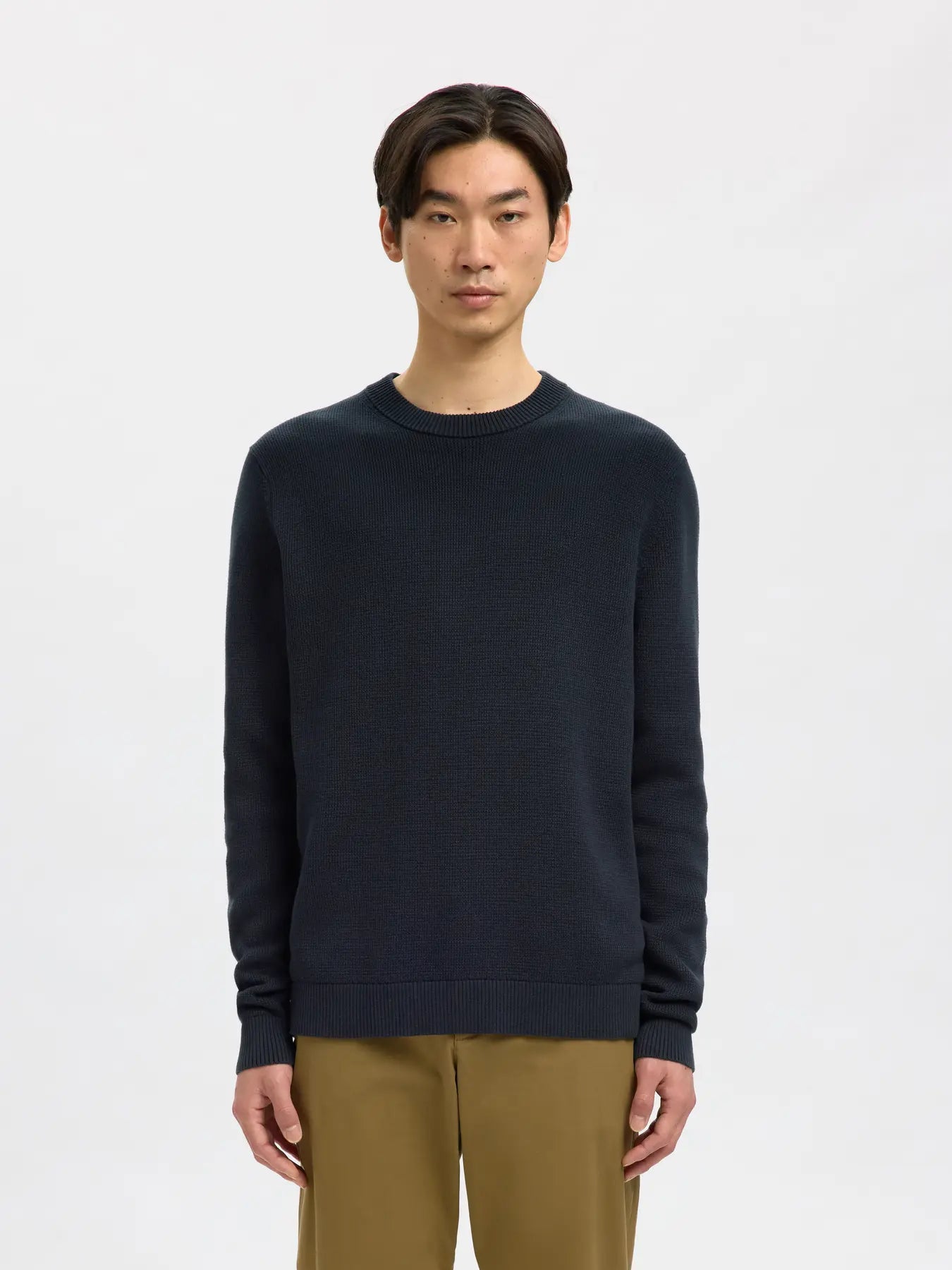 Si no sabes en qué prenda invertir, apuesta a las prendas de punto, que harán tu armario a prueba del frío. Este jersey de cuello redondo está confeccionado con algodón orgánico 100 %, por lo que es una prenda transpirable, ligera y superduradera. Combínalo con una camisa a cuadros, unos jeans y unas botas.