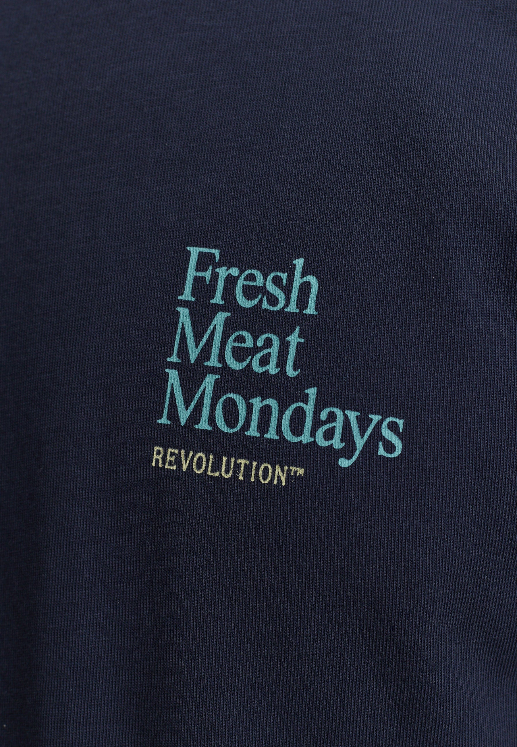 Camiseta regular fit, cuello redondo y manga corta, confeccionada en punto de algodón orgánico, con un gramaje de 200gsm. El acabado de la camiseta añade suavidad y asegura estabilidad y durabilidad a la camiseta. El algodón orgánico se cultiva a partir de semillas no modificadas genéticamente, sin fertilizantes ni pesticidas químicos, lo que potencia la biodiversidad y con un menor impacto en el equilibrio ecológico. La camiseta presenta un estampado gráfico grande en la espalda, un estampado pequeño en la parte delantera y una etiqueta de la marca en la parte inferior.