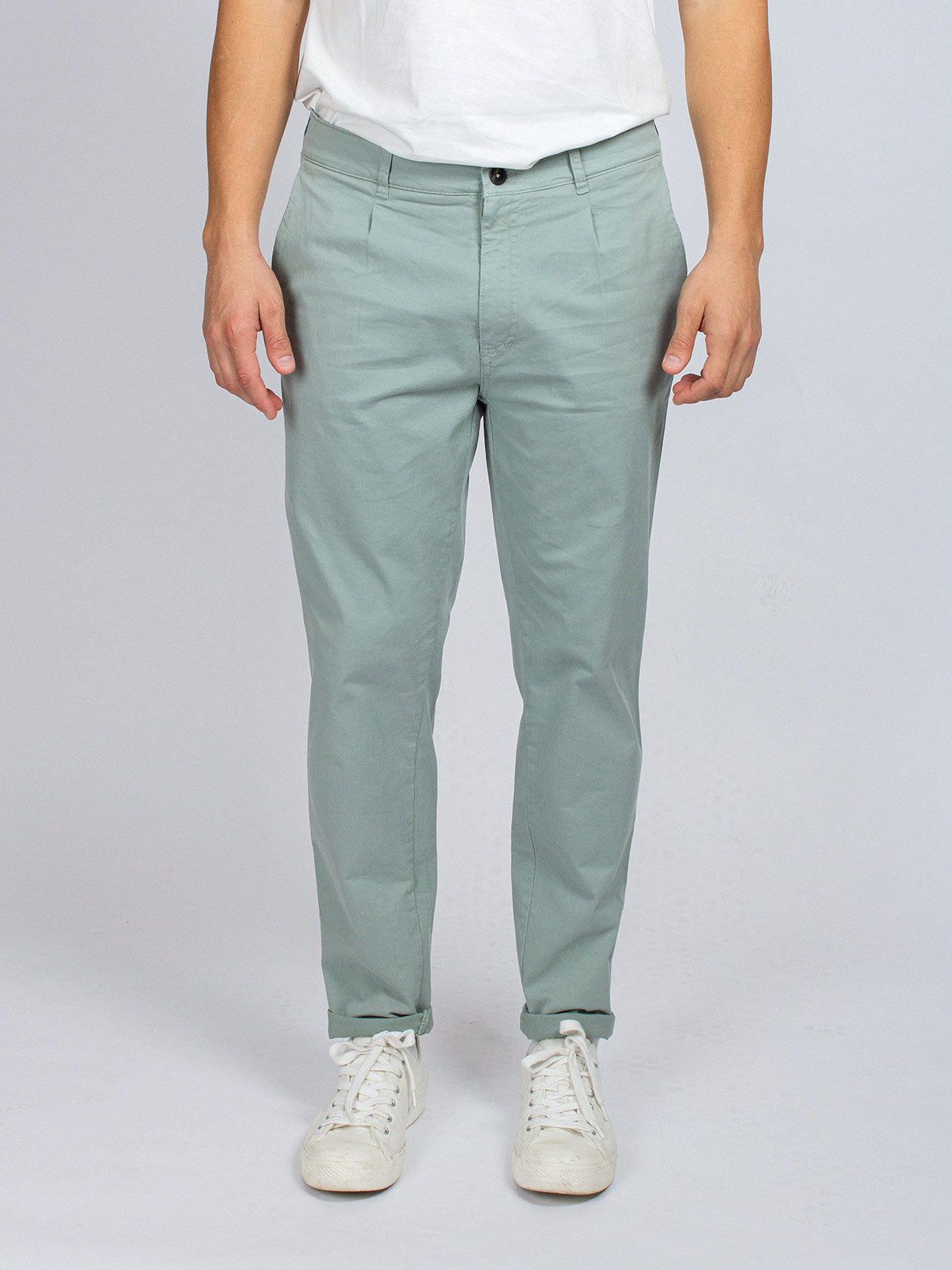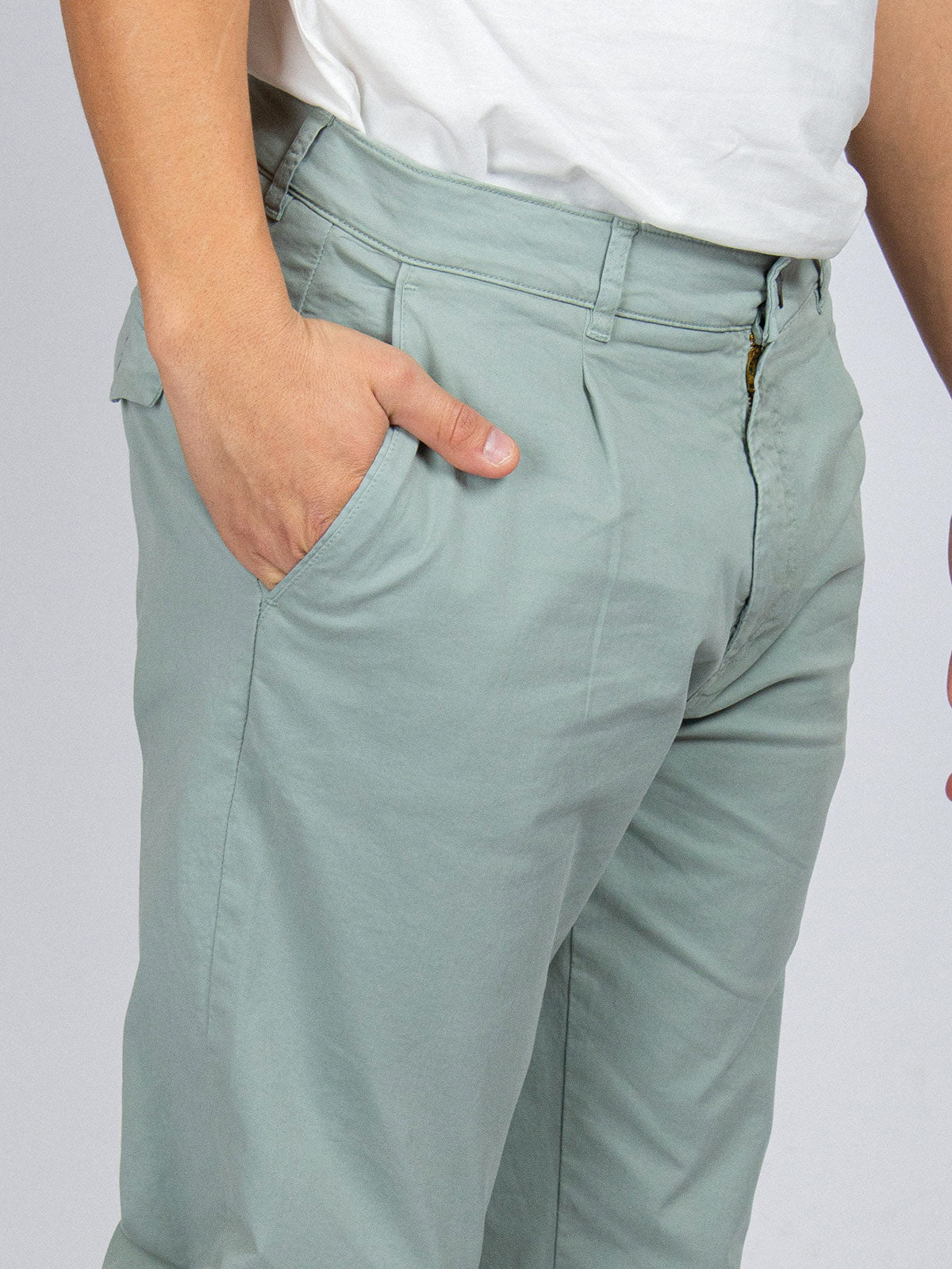 El light pant es un pantalón tappered fit con pinzas en el frontal. Esto quiere decir que tiene un corte un poco ancho en la parte superior (cintura y muslo) para luego estrechar progresivamente a medida que la pierna baja. Es cómodo y elegante pero desenfadado a la vez y con cierto aire sport, perfecto para llevarlo remangado.