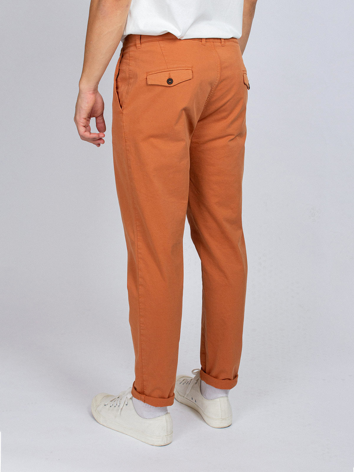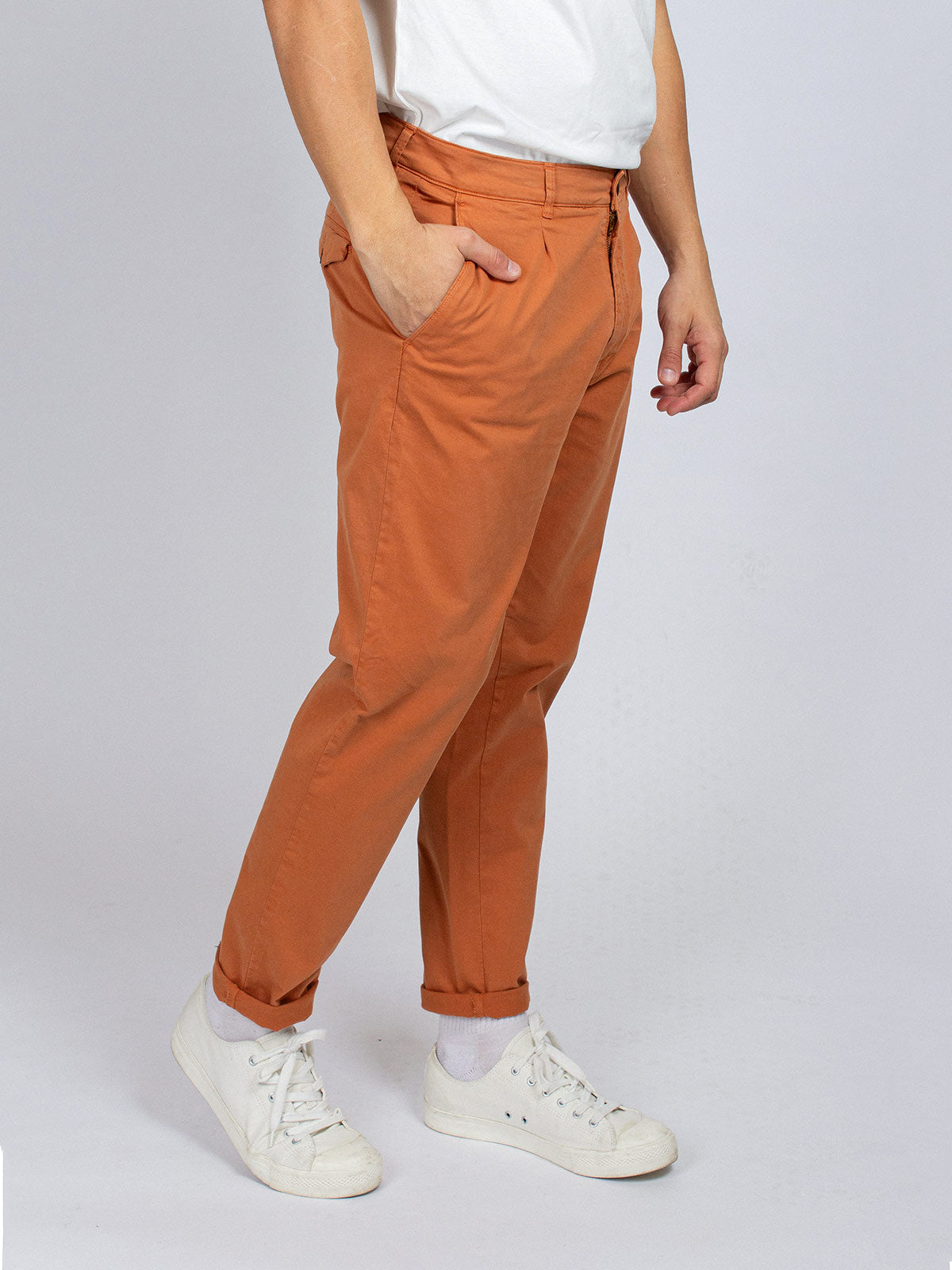 El light pant es un pantalón tappered fit con pinzas en el frontal. Esto quiere decir que tiene un corte un poco ancho en la parte superior (cintura y muslo)  para luego estrechar progresivamente a medida que la pierna baja. Es cómodo y elegante pero desenfadado a la vez y con cierto aire sport, perfecto para llevarlo remangado.
