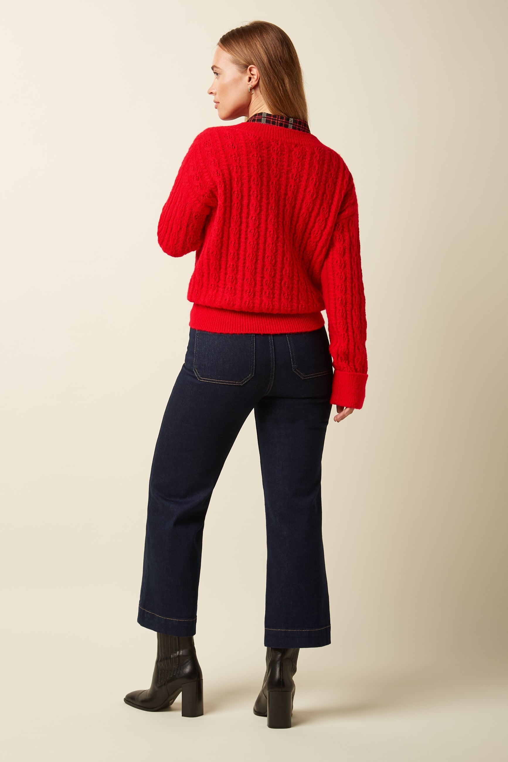 Un top con escote en V y elegantes puños acanalados plegados, confeccionado con una lujosa mezcla de lana y mohair.
