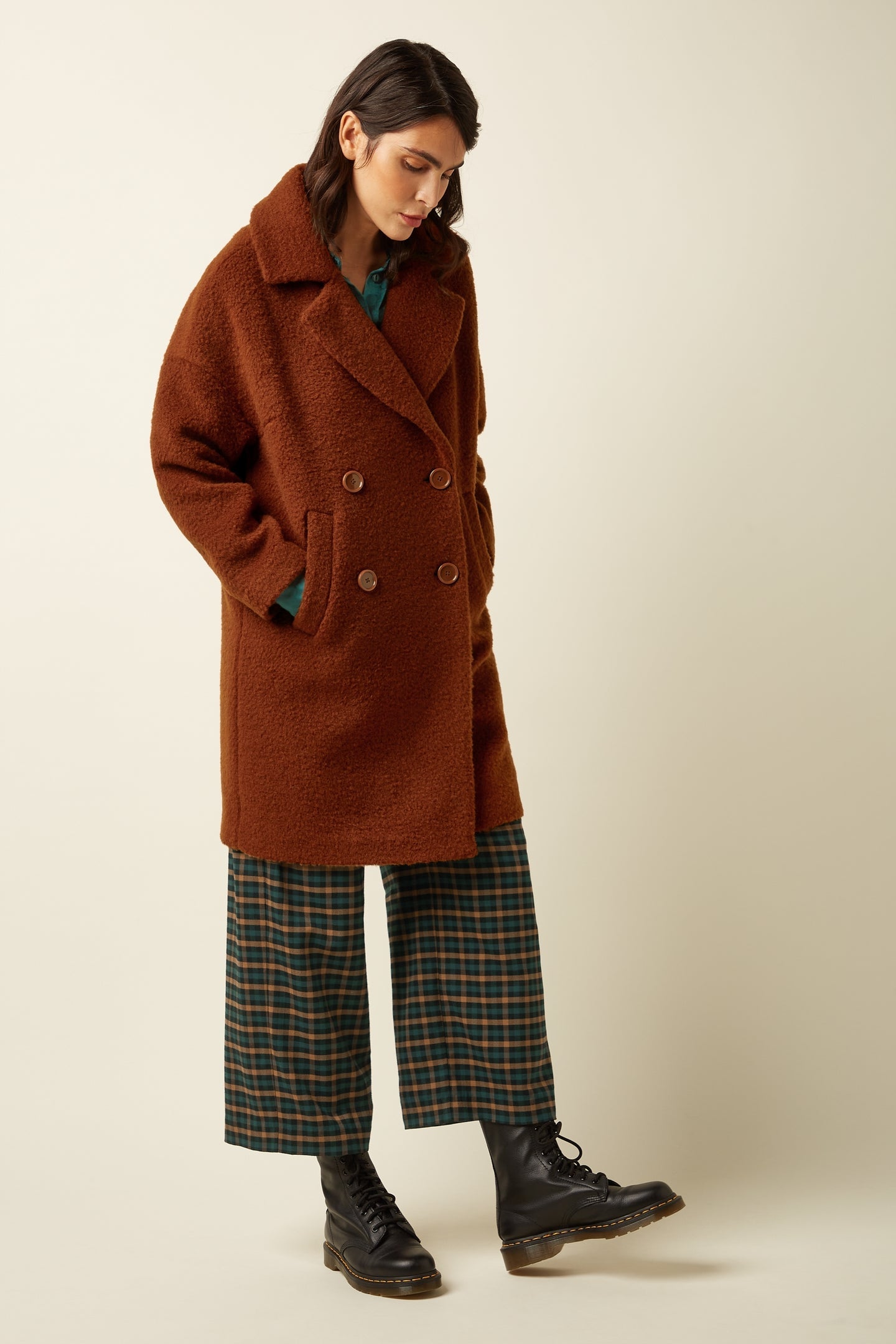 Un abrigo cruzado bellamente elaborado en una mezcla de lana, con elegantes bolsillos delanteros y un elegante cuello de solapa.