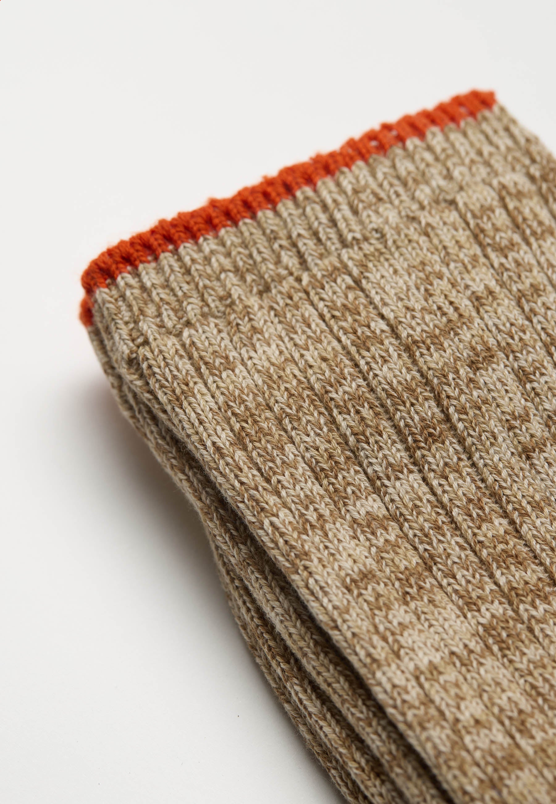 Calcetines de caña media para exteriores con puño tradicional con textura acanalada que ayuda a que se mantengan en su lugar. Elaborados con algodón orgánico supersuave y un poco de elastano para que mantengan su forma, estos calcetines son perfectos para looks deportivos o informales. Su sutil efecto jaspeado les da un toque acogedor, ideal para combinar con zapatillas y pantalones remangados.