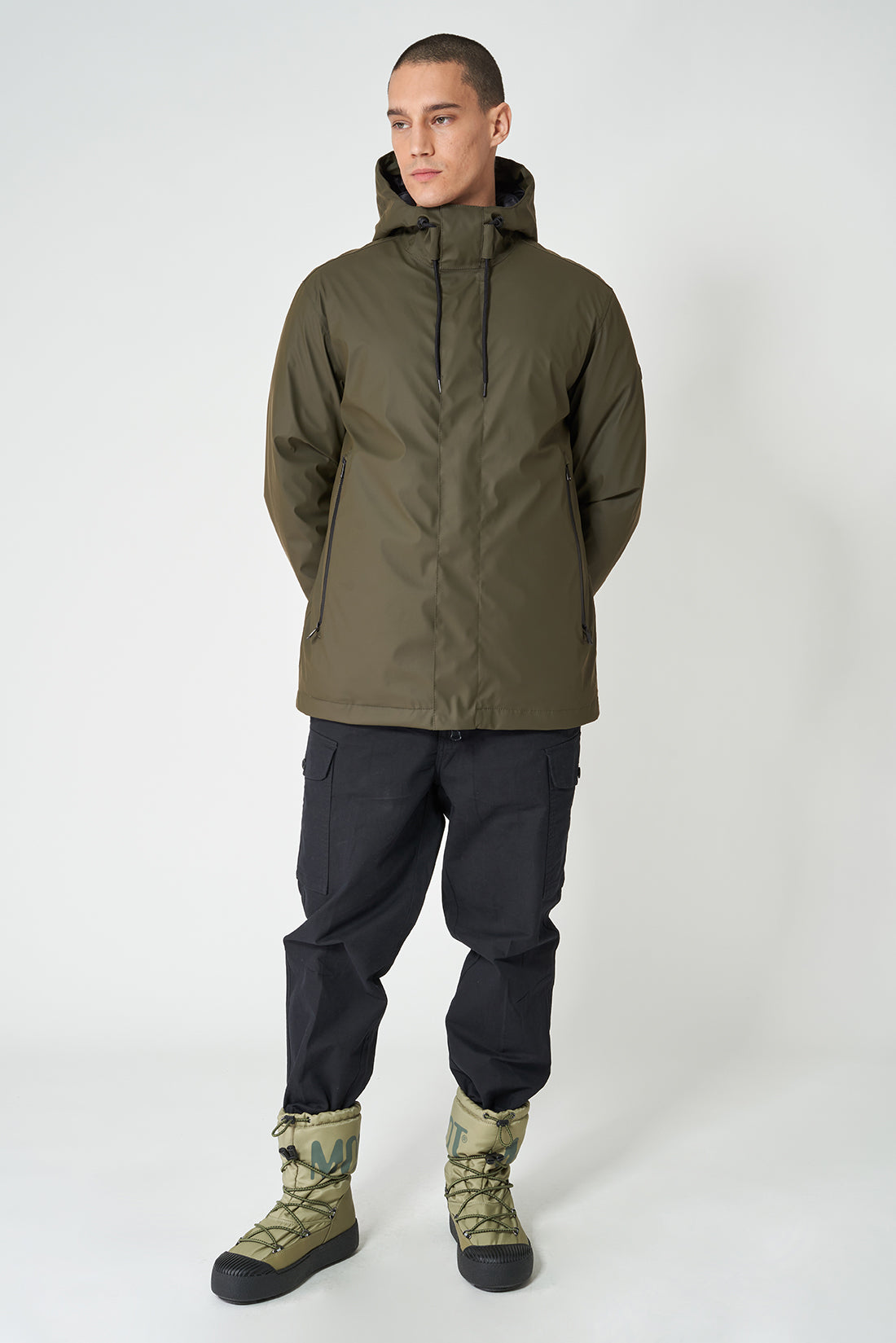 Chaqueta impermeable de hombre acolchada diseñada para satisfacer las necesidades de un estilo de vida activo. La chaqueta Plas está confeccionada en poliuretano 100% resistente al agua con corte recto. Todas las costuras selladas para una impermeabilización total, cuenta con un acolchado sin plumas y una gran capucha con cordón para protegerte de la lluvia. La parte delantera está equipada con amplios bolsillos y se cierra con una larga cremallera impermeable de doble cursor. Se ajusta a la talla real.