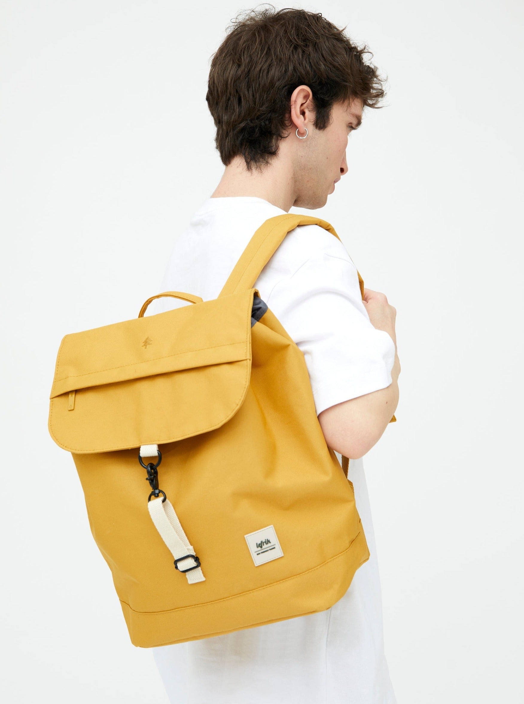 Su forma redondeada y la gran solapa de su cierre definen el modelo más icónico de la marca.